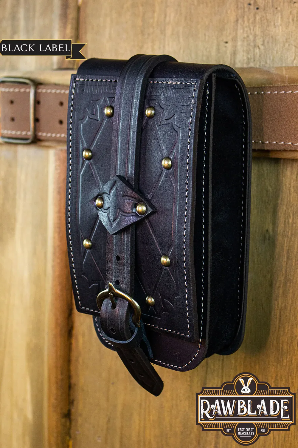 Inspired by the medieval noble court, the Carcassone pouch is made with high quality 3mm leather, engraved and finished with bronze rivets and buckle. It's 10,5cm lenght and 20cm heigh, and a width of 4,5cm. It's perfect for any cellphone and other basic items you want to carry around!